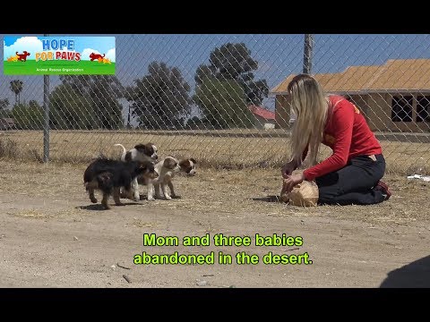 Когато един добър самарянин видя това семейство изоставен на офроуд в пустинята (2.5 часа източно от Лос Анджелис), започна да ги храни... мама и три бебета. Като се има предвид, че има толкова много койоти в областта, това е невероятно, че е оцелял!