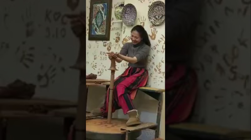 Един турист в Иран за първи път се опитва да направи ваза на грънчарско колело.