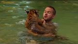 Лъв е замайване в горната част на акация, която му е трудно да слиза!