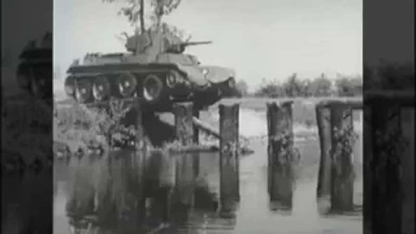 В един стар филм, Виждаме съветски танк Т-34, за да премине през едно тесте, който току-що е създаден за преминаване на колесници.