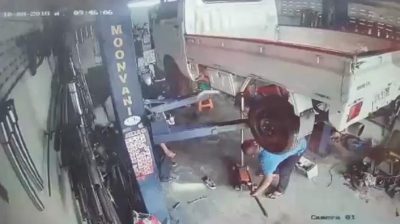 Един инженер в работилницата ще се опита по неизвестна причина лифт жак с камион, докато е вече на повдигаща рампа. Камионът ще се преобърне наопаки и се намират в почвата.