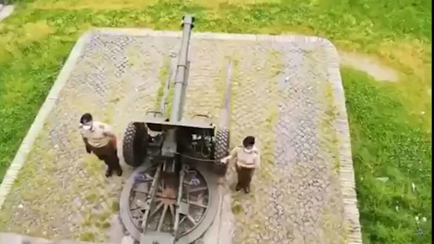 Една жена войник в Италия трудност уволнен артилерийски оръдия. Един колега ще дойде след известно време, за да.