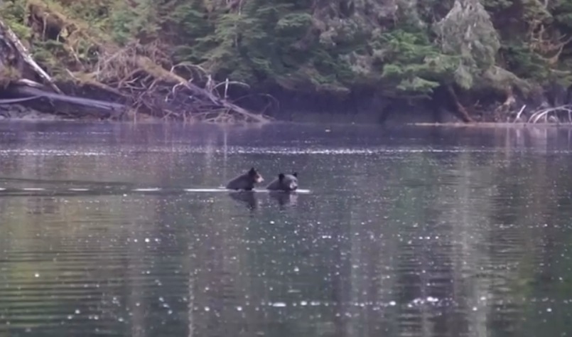 На 3 септември 2019 г. в гората Великата мечка в Британска Колумбия, Канада, плюшено мече се приближи до гърба на мама да пресекат река въпроси заедно.