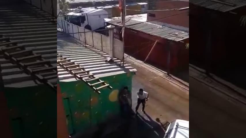 В квартала на El Bosque в Сантяго, Чили, по време на карантина, протестиращ искаше да провокира полицията, като показа дупето си. Отговорът от водното оръдие беше незабавен. Мъжът беше ударен от вода с голям натиск, който го хвърли обратно. От началото на карантината в Чили (16 май 2020 г.), Проведоха се много демонстрации против глад.