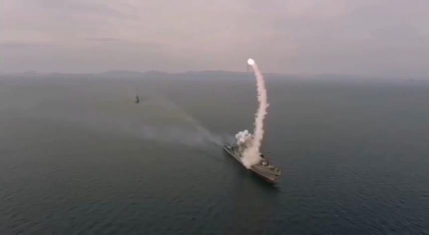 Руският флот тества нов тип дистанционно управляеми ракети, които решиха да се потопят впечатляващо в морето.