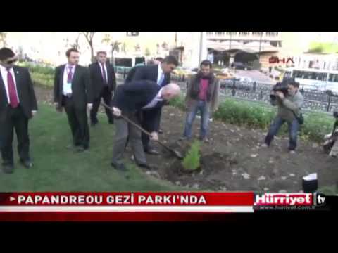 В символичен посещение на Турция в Gkezi парк, близо до Таксим, c. Папандреу в ролята на градинар засажда дърво заедно със саксията...