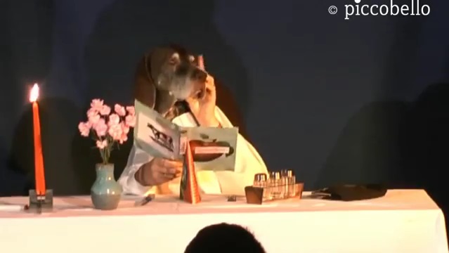 Много търпелив обучени спасителни кучета, Mariele, То се провежда в много смешно театрална фигура във Франция.
