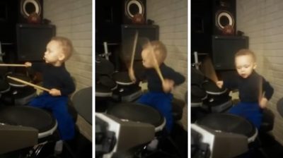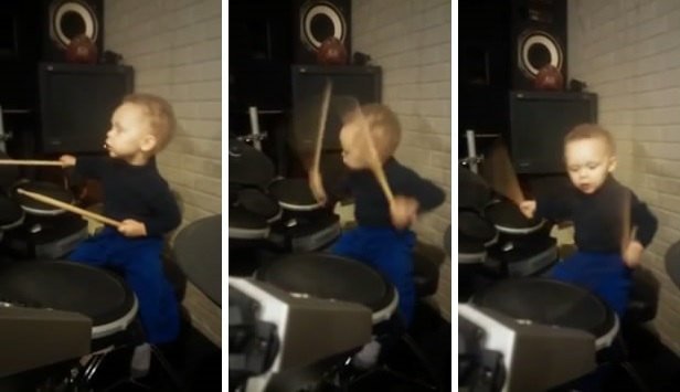 Джаксън е само на 2 години и може да свири „The Pretender“ на Foo Fighters на барабаните. Не носят тапи за уши да защитите вашите уши, но звукът не е толкова силна, колкото звучи. Барабаните са електронни, и записа на телефона се поставя пред високоговорителя.