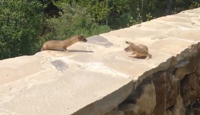 Град на парк Сити Юта, някои млади невестулки, опитвайки се да следват майка си, Аз просто качил ниска стена. Не е лесно за всички като един от малките склонни, но за щастие майка е там да помогне.