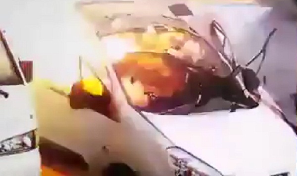 Пламъка на запалка предизвика експлозия в кабината, който счупил предното стъкло и е значителна повреда. Водачът в шок излезе от колата си след като леко ранени. За щастие, избяга невредим само с няколко изгорени косми...