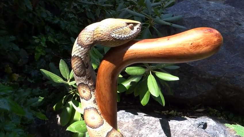 Скулпторът Майк Stinnett демонстрира изграждането на дървени тръстика, Това се оказва змия. Детайл на скулптурата е отличен.