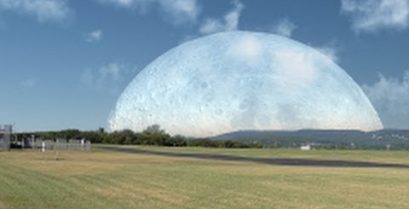 Цифрово представяне на как се гледа Луната, ако тя е същото разстояние до Международната космическа станция МКС от земята.