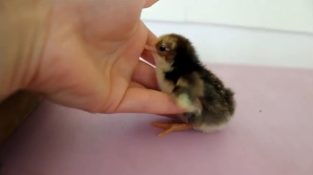 Само няколко часа след раждането, Тази мацка изглежда малко грижи. Когато човешка ръка наближава, се изкачи над него и веднага успокоява.