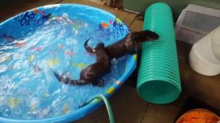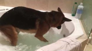 Кайзер, Роден Овчар, впечатлен със сапунена баня и играят с вода.