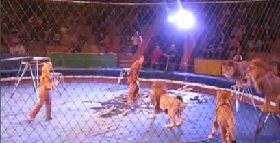 Шокиращи момент, когато два лъва нападнаха техните преподаватели, по време на цирк шоу в Лвов Украйна 2010. В сцени напомня на повече дуела в колосален въпреки цирк, укротителят на зверове [...]