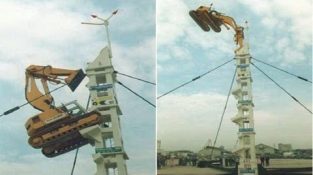 УДИВИТЕЛЕН багер Liebherr се изкачва до върха – багер се издига сам до върха на кула
