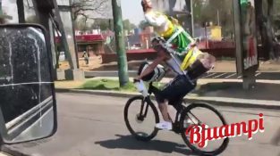 А човек, който носи велосипед в задната част на статуя на Исус, но ще бъдат премахнати и да падне върху кола.