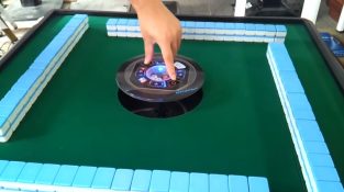 Това видео показва как автоматична маса работи за известната игра Mahjong, което ще разбърка плочките и разпространява до четирима играчи.
