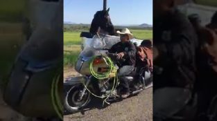 В Intacho САЩ, на Кейси Пъркинс построена специална инвалидна количка за мотоциклет, които могат да транспортират своите коне.