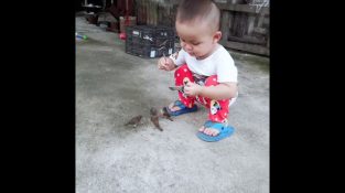 Едно дете се храни бебето птици