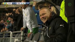 Hammarby легенда Кенеди Bakircioglu празнува dreamgoal в последния си сезон като пие бира хвърлен в от трибуните