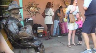 Човек-статуя плаши майка с дъщеря си