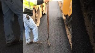 Индиана САЩ, пътно строителство работник вграден лопата със стойки. Вече не е необходимо да се огъват всеки път, когато имате нужда от лопата.