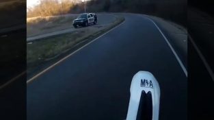 А ездач в САЩ вдигате мотора като той вижда една полицейска кола, идващ от противоположната посока. Но карма ще го накаже и ще загуби контрол над машината.