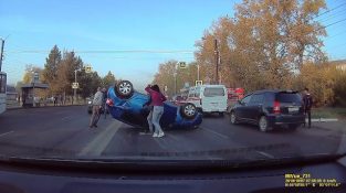 Една кола се превръща в над Красноярск, Русия