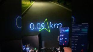 Използване на устройство Lasercube и приложение за смартфон, GPS работи, като показва лазерни индикатори на пътя.