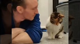 22-годишна котка просто вижда стопанина си, който се приближи мълчаливо към нея отзад.