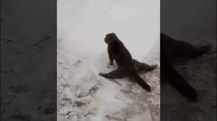 Една котка иска да отиде на разходка в снега, но постоянно се плъзга по заледени повърхности.