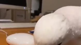 Прахосмукачка робот Roomba играе детегледачка с коте, като забавлява малкото кожено топче с играчка, прикрепена към качулката му.