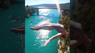 Техниката за впечатляващо видео, заснето по време на дълго гмуркане от скала.