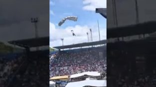 По време на събитието за Деня на независимостта на Уганда на 9 октомври, парашутистите от армията на страната демонстрират уменията си, докато кацат на претъпкан стадион. Кацането не мина толкова добре [...]