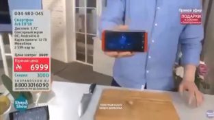 За да покажете трайността на екрана на мобилния телефон, продавач на телемаркетинг в Русия счупи някои гайки с него. В крайна сметка екранът ще се счупи, и продавачът ще се опита да го скрие.