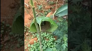 Шивашка птица (Tailorbird) е изградило гнездото си вътре в листо.