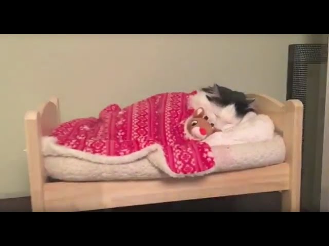 ঘুমাতে যাওয়ার সময় হলে, সোফি বিড়ালটি তার ছোট কাঠের বিছানায় উঠে একটি উষ্ণ কম্বলের নিচে শুয়ে আছে.