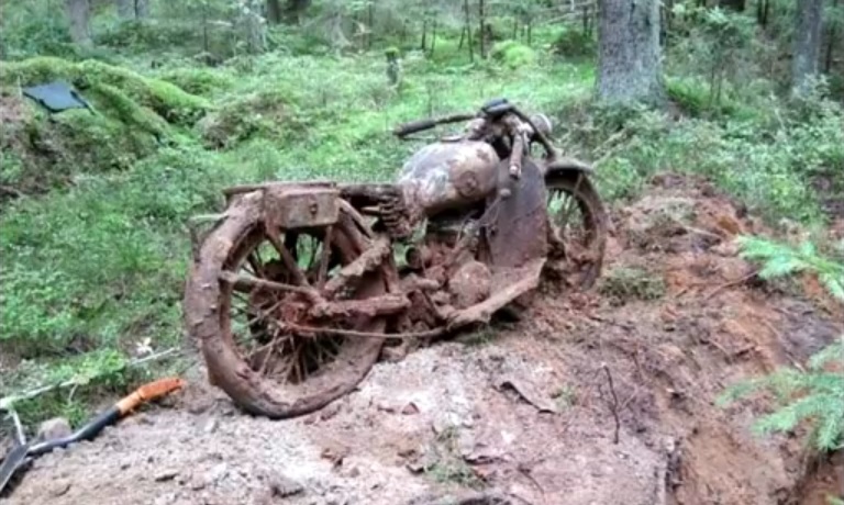 রাশিয়ান গুপ্তধন শিকারীরা 1930 সালের একটি পুরানো জার্মান DKW L-300 মোটরসাইকেল খুঁজে পেয়েছে, যা মাটির নিচে চাপা পড়ে ছিল.
