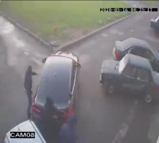 গ্যারেজ মালিক একটি গাড়ি দিয়ে চোর আঘাত