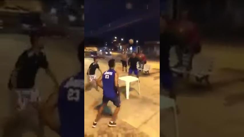 তরুণ ব্রাজিলিয়ানরা তাদের নিজস্ব একটি আসল খেলা খেলতে একটি টেবিল ব্যবহার করে.