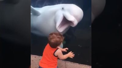 মার্কিন যুক্তরাষ্ট্রের কানেকটিকাটের মিস্টিক অ্যাকোয়ারিয়ামে, একটি বেলুগা তিমি ছোট বাচ্চাদের ভয় দেখাতে মজা পায়, কিন্তু অন্যান্য দর্শক.