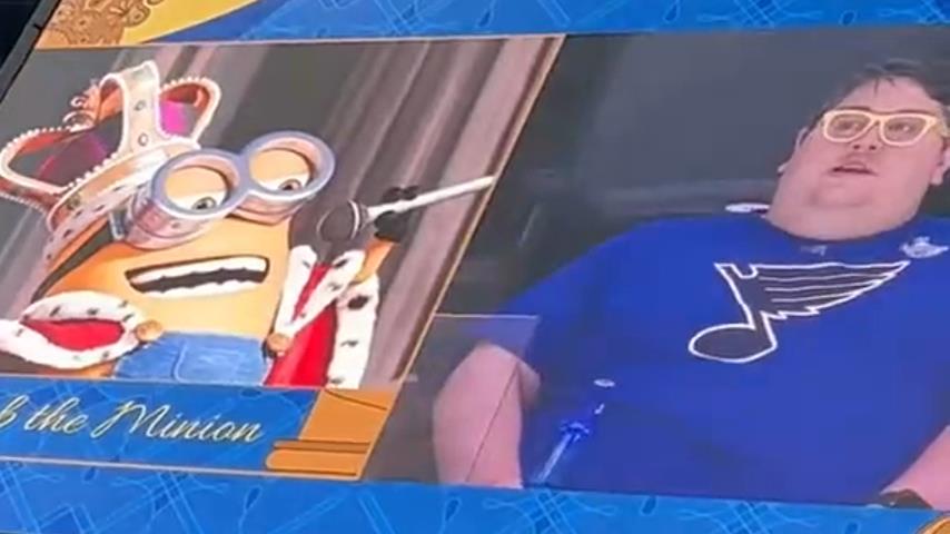 মার্কিন যুক্তরাষ্ট্রের একটি হকি রিঙ্কে হাফটাইম চলাকালীন, স্টেডিয়ামের বিশাল স্ক্রিনটি বিখ্যাত টিভি চরিত্রের সাথে কিছু দর্শকের মিল দেখায়.