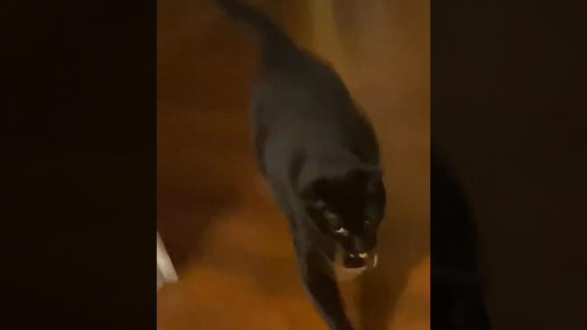 যুক্তরাষ্ট্রের লকপোর্ট শহরের একটি বাড়িতে, একটি বিড়াল তার মুখে একটি ছোট সাপ ধরে ঘরে প্রবেশ করে.