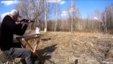 একটি ফ্লিন্টলক রাইফেল লোড করা এবং গুলি চালানোর প্রদর্শন, এক ধরনের অস্ত্র যা 17শ থেকে 19 শতকের মাঝামাঝি পর্যন্ত প্রচলিত ছিল.