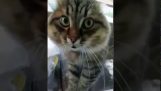 বিড়ালটি তার মালিকের প্রতি তার ভালবাসা চুদাচুদি করে এবং পিউরিং করে দেখায়.