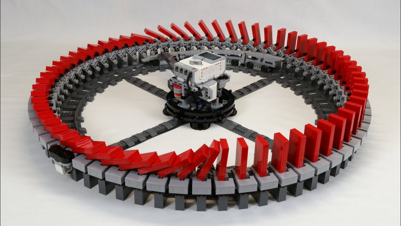 ব্যবহারকারী JK Brickworks রেলের বাইরে একটি রিং তৈরি করে, যার চারপাশে বাকি ৬৪টি ডমিনো. প্রক্রিয়াটি পতনের পরে ডমিনোগুলিকে আবার উঠতে দেয়, এবং অপারেশন ক্রমাগত পুনরাবৃত্তি হয়. একটি Mindstorms EV3 কম্পিউটার পতনশীল ডমিনোগুলির সাথে মেলে র্যাম্পের গতি নিরীক্ষণ এবং নিয়ন্ত্রণ করতে ব্যবহৃত হয়.