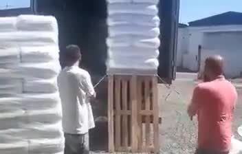 ফর্কলিফটে থাকা একজন লোক বিয়ারের কেজি বাঁচিয়েছে