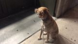 অন্য একটি বিপথগামী বিড়াল দ্বারা শিকার করা একটি বিড়াল, সাহায্যের জন্য তার বন্ধু কুকুরটিকে চিৎকার করে কেবল বাড়ির প্রবেশ পথে পৌঁছেছে.