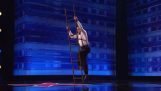একটি বল সহ একটি খুব কঠিন অ্যাক্রোব্যাট দুর্দান্ত সম্পাদন.